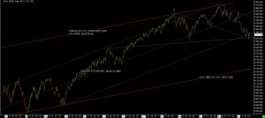 - The channels lines, which are red dashes or green dashes and lay mid-way between the yellow mid-line and the upper (sold red) or lower (solid green) boundaries are minor support/resistance.