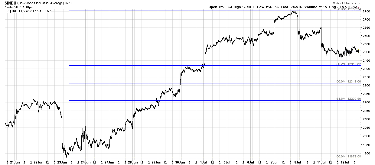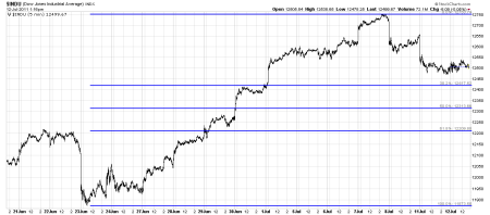We have apparently finished 2nd step down and should have only 1 more step down. The chart below has some stopping points for the rally to restart, provided the world isn’t ending. The first line is the 38% retracement line and could be a possibility because it coincides with a prior small top. The last line (before 100%) is 62% and that’s a perfect lineup with a previous high of consequence.