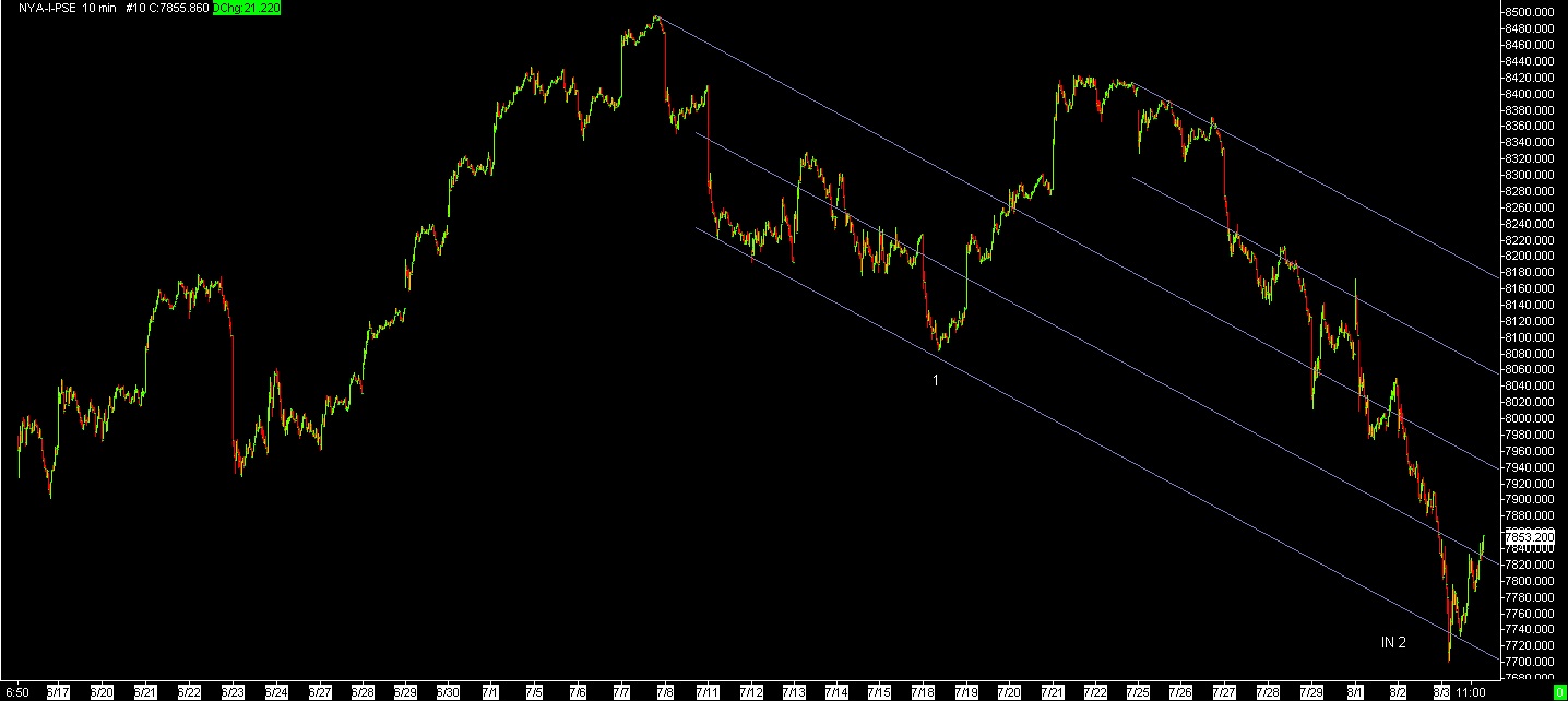 I have a couple of charts today.  The first one is the New York Stock Exchange Index and it shows a nice channel that has formed since July 7th.