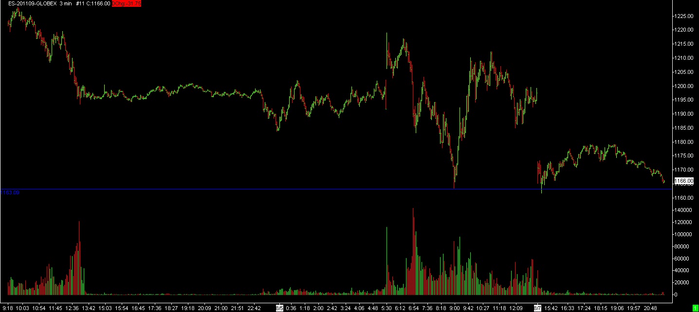 08-07-11 SP 500 FUTURES 5 MINUTE BARS