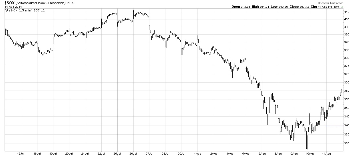 We’ll wait and see how it comes out but we certainly have the ingredients of a completed decline. If true, it’s kinda late to buy the Tuesday bottom so I will wait for the next bottom. What if the next bottom never comes??? That’s possible because a renewed bull move may give no opportunity for late comers. Regardless, I think some type of secondary bottom is likely due to the violent nature of the downtrend. If I’m wrong there will be time to get on board at a different stop.