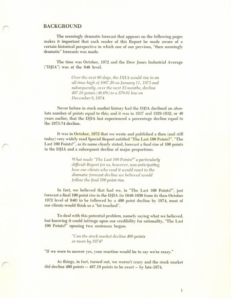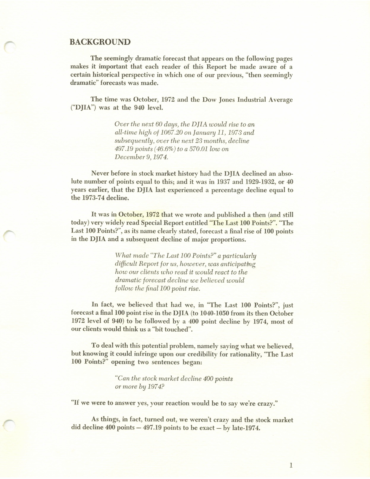 I was a subscriber to Edson Gould’s “Findings & Forecast” from 1974 to 1979. Impressed by Edson’s genius of calling market tops and bottoms with remarkable accuracy, I began keeping all of Gould’s special reports, yearly forecasts and important portions of his market letters. These publications still exist in my library 38 years later (perfect condition). I have recently scanned all of these publications into PDF format.