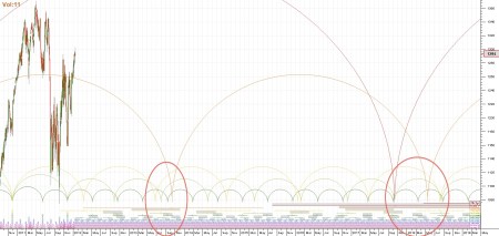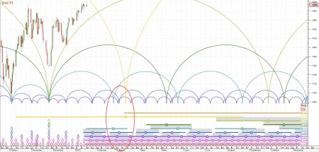 The third chart is also based on data from 1950 to the present and shows late February to early March 2012 as the date for the next important bottom (15/16 month cycle low). After that bottom the chart shows a lesser bottom occurring during May 2012. This chart is based on 62 years of data and it tries to fit the cycles to this large data-set. In the next chart we’re going to see a difference of opinion on the upcoming bottom based on a shorter data-set.