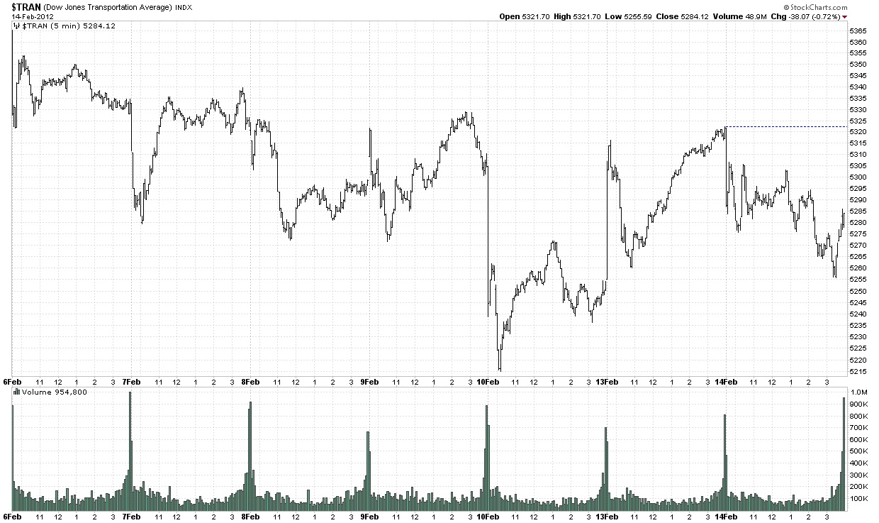 The DJ Transports have been in a downtrend for more than a week. The late rally today did very little to change that outlook.