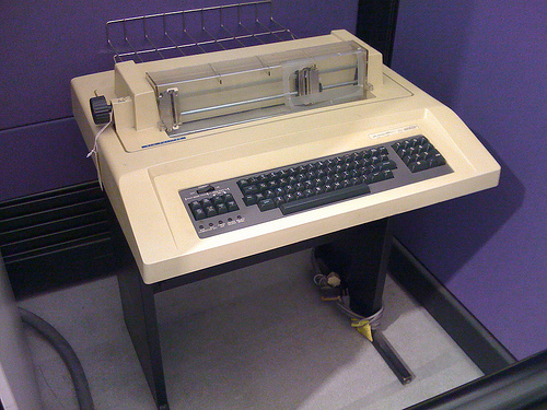This DecWriter printer below was so clatteringly loud that I installed it in a closet and kept the door closed. It was a dot matrix printer (remember them???) and printed at the blazing speed of 30 characters per second. That may sound fast but it took several minutes to print one page. Today my laser printer will churn out 12 pages per minute. I also had a 300 baud telephone modem for dial-up connection to outside computers. 300 baud is about 30 characters per second and it was agonizingly slow.