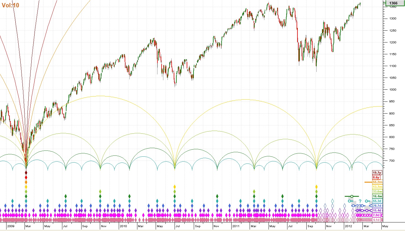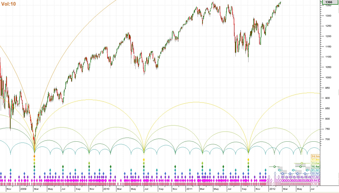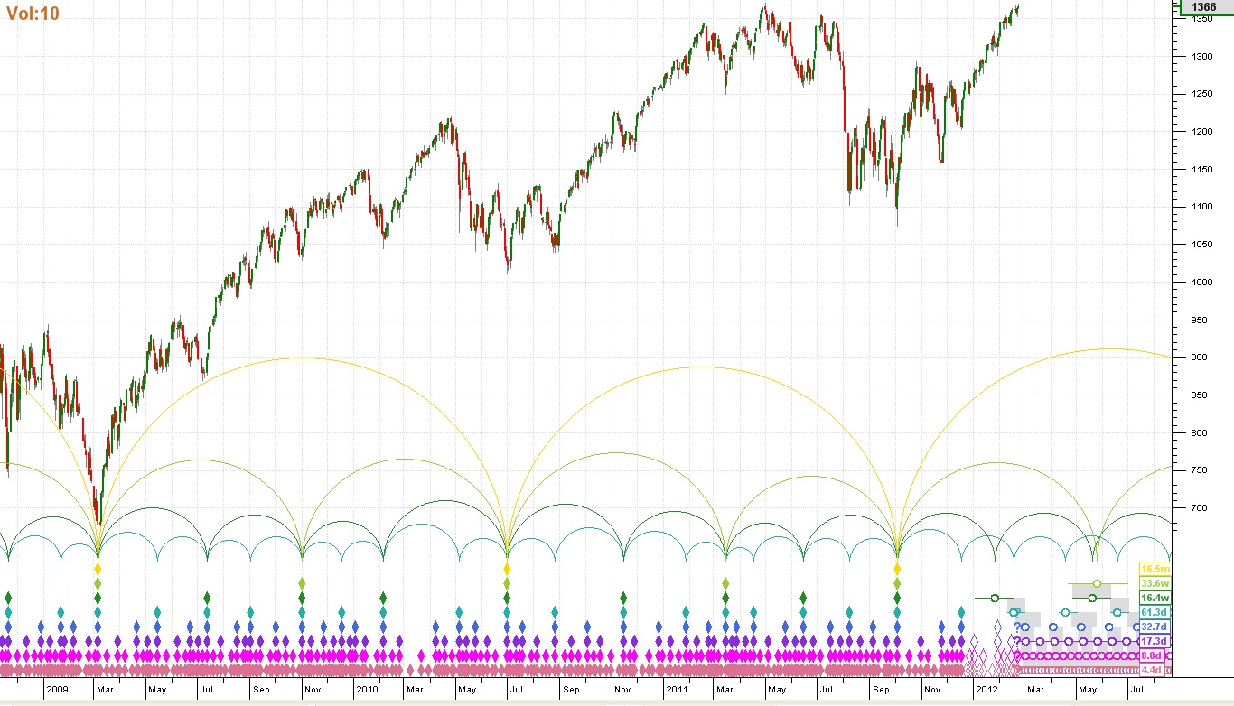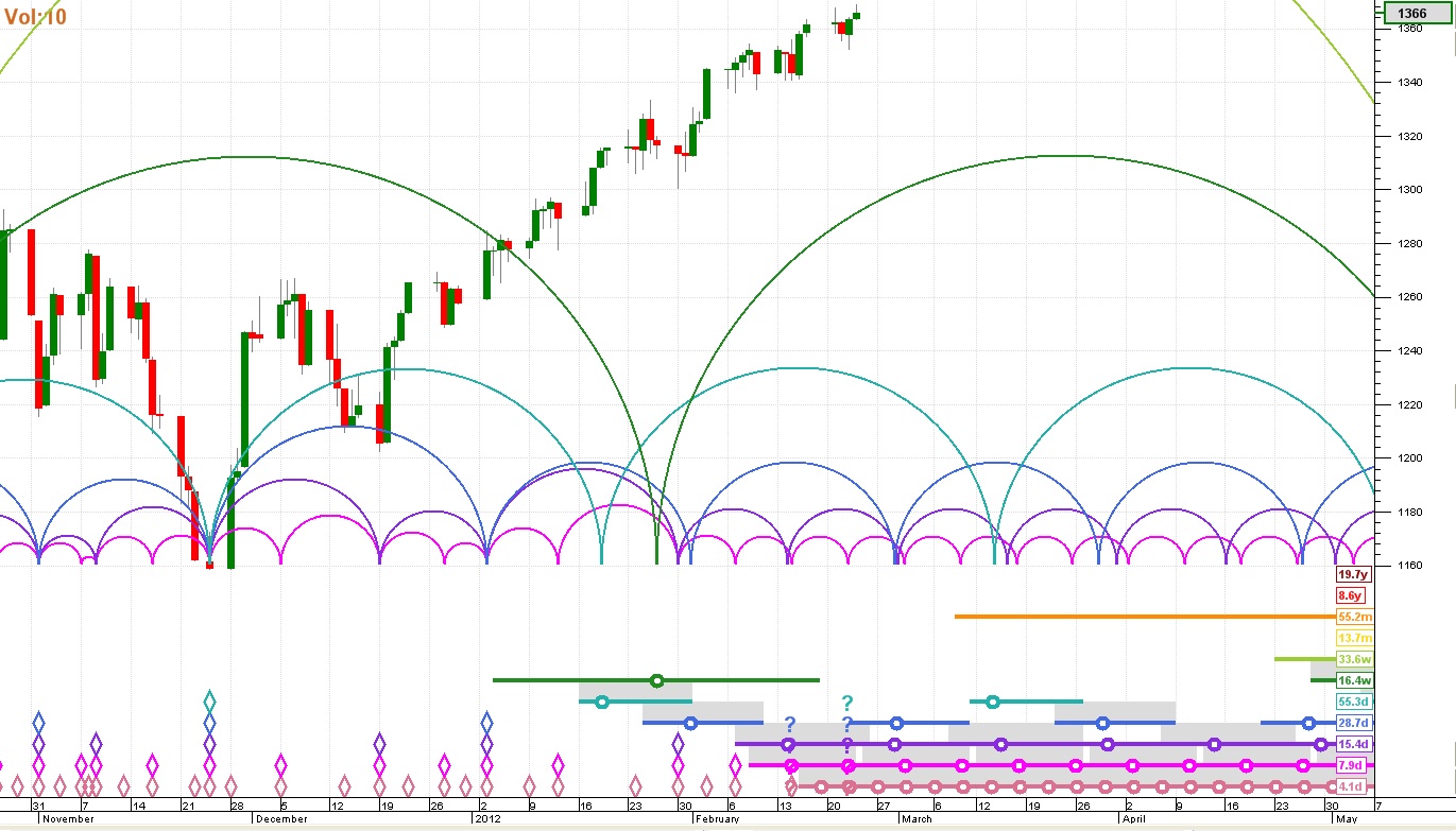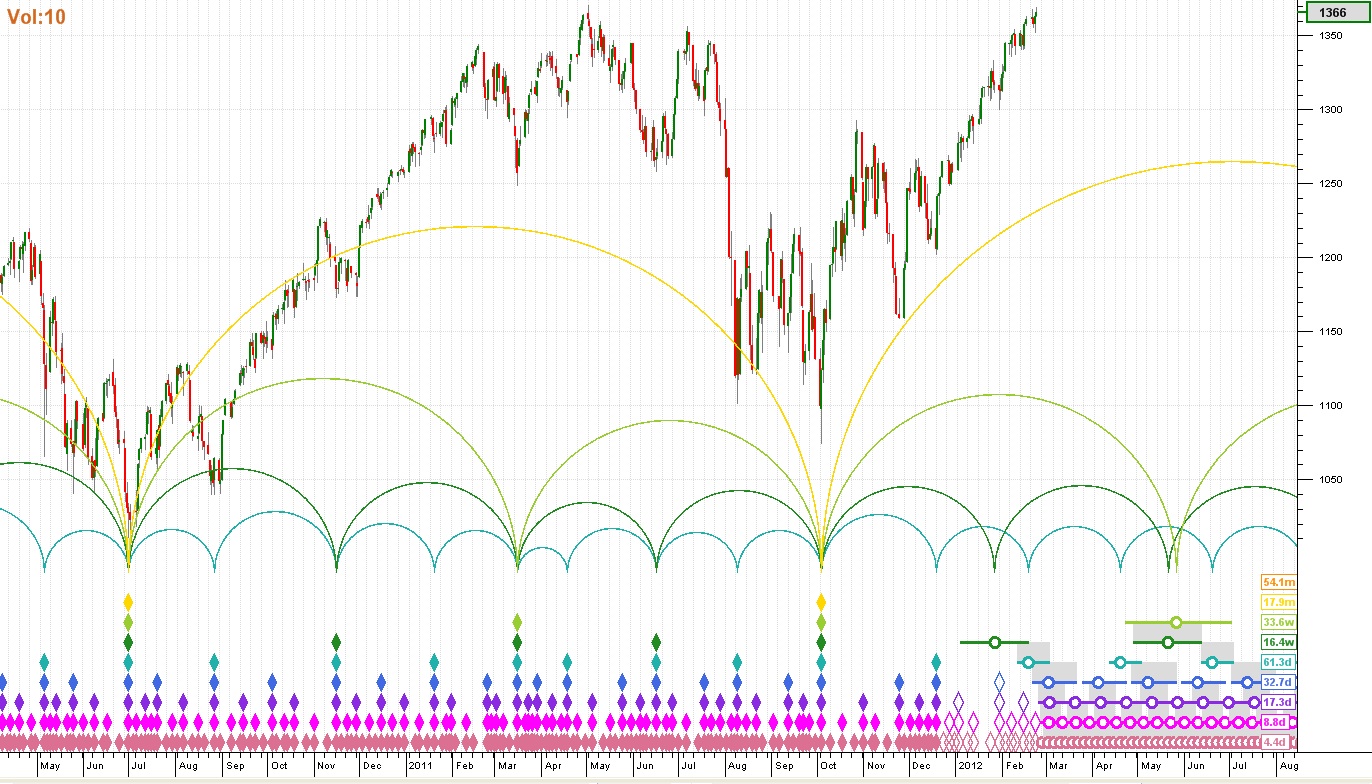 On a long term basis there is little or no difference between the dataset cycles but short term cycles “may” have a different interpretation. We had such an occurrence take place in January 2012, where the shorter term dataset had a 16 week cycle bottom occurring in late January, while the older and longer dataset had the same cycle bottom occurring in late February. Now that we have passed the January bottom cyclic timezone, all of the datasets appear to agree that the bottom occurred on January 30th. It was a 16 week cycle low and these lows are normally more significant than January 30th.