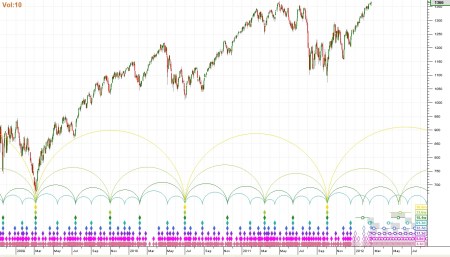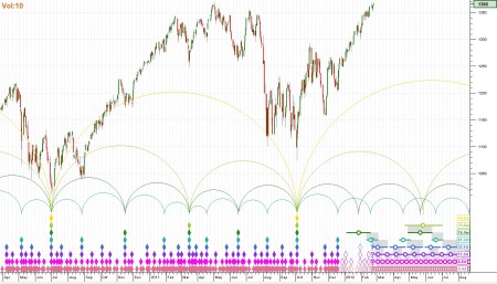 You can find further information about Hurst’s Cyclic Principles here. There is lotsa good Hurst info at that link and if you want up to the minute info on the Hurst Cycles, consider subscribing to their service at the following link, Hurst Signals. It’s a very good service and I am a subscriber too. The software to generate the cycles is expensive but Hurst Signals is reasonable and the charts and comments are constantly updated throughout the market day. One reason why I subscribe to their service is that it can be accessed very quickly. For me I don’t have to update my data files and boot up Parallels, a Windows virtual OS running concurrent inside the Apple OS X. After Parallels is up I can then start the Hurst software. Once it’s operating on my Apple, it’s no problem. But as you can see there is some time and effort to running Windows software on an Apple. But Hurst Signals gives me the answers I need quickly and straight to the point and it’s cheaper. Hurst Signals operates inside your browser, hence the speed. This service has confirmed my thoughts on an approaching bottom on more than one occasion. The software package for the intraday cycle charting and analysis is $2500 plus $375 per year maintenance, while the Hurst Signals subscription is $135 quarterly (less if you pay by the year).