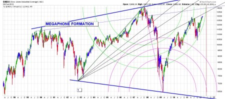 The lesser downside target of both formations is the megaphone formation as it likely calls for a bottom 1,000 to 2,000 points below the 2009 low, which would be around Dow 5,000.