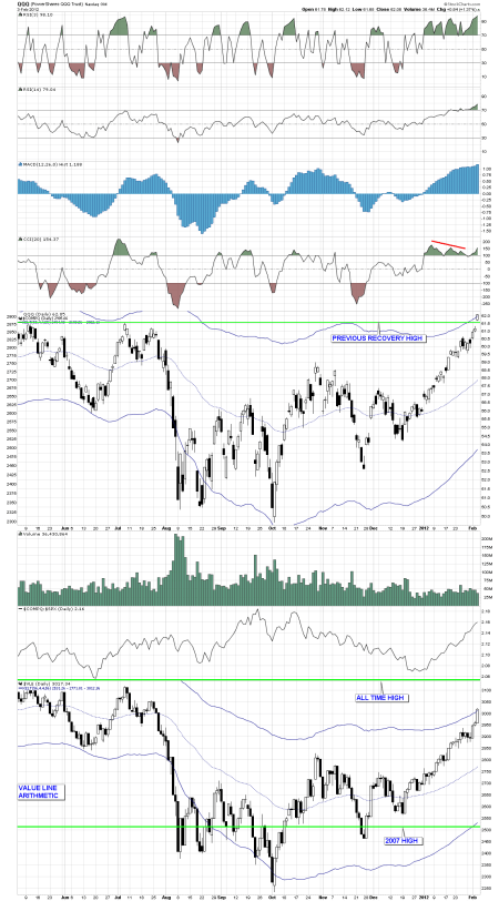 The Value Line Index moved through its 2007 all-time highs in April 2010. Currently the index is drawing in on the May 2011 highs.