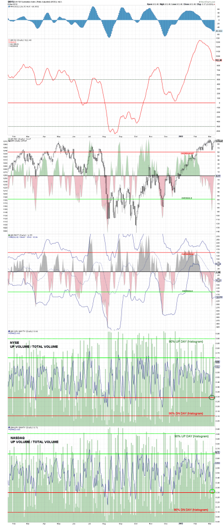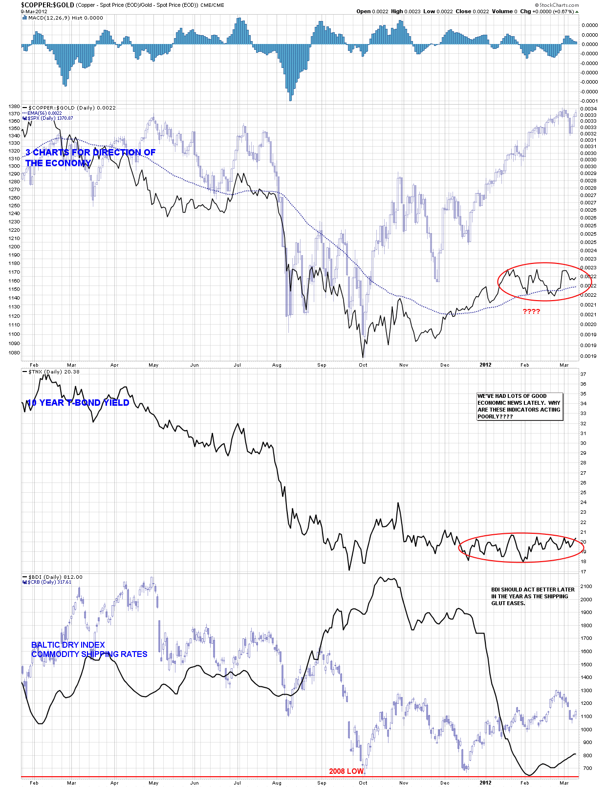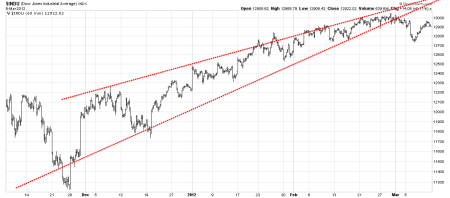 Since February 21, 2012 the SP 500 has gained 9 points or 6/10 of one percent. The closing peak occurred on February 28th and since then the SP 500 has declined one point. So there’s not much happening in the last three weeks.
