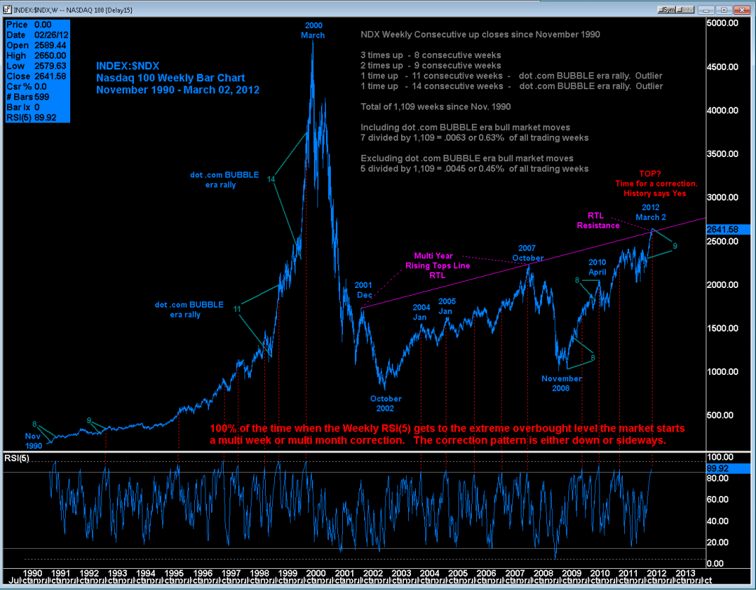 Now, recall those negative nabobs that told us late last year the first half of 2012 would be really bad? W-R-O-N-G, for the SPX is off to its ninth best start of the year, while the NASDAQ (COMPQ/2976.19) is off to its best start ever! In seven out of the past ten “best starts,” the SPX was higher at year-end, which is why I keep chanting, “You can be cautious, but don’t get bearish.” Accompanying the rally has been improving economic statistics and last week was no exception. Indeed, of the 20 economic reports released last week, 15 were better than estimated. Meanwhile, earnings reports for 4Q11 have come in better than expected, causing the ratio of net earnings revisions for the S&P 1500 to improve. Then too, the employment situation reports continued to improve. Of course, such an environment has led to increased consumer confidence punctuated by the February’s Consumer Confidence report that was reported ahead of estimates at 70.8, versus 63.0, for its best reading in a year. And that optimism makes me nervous.