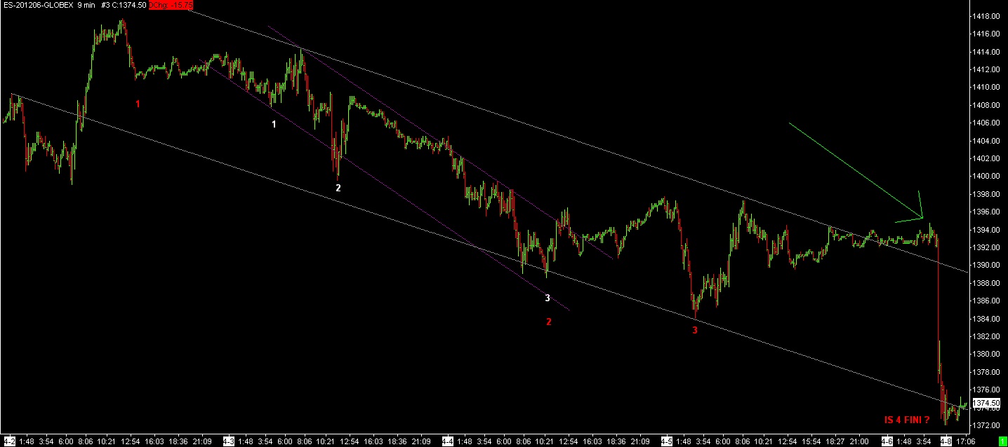 Following is a chart of the SP 500 futures from Sunday 04-09-12 at 8 PM EDT. The period for each bar is 9 minutes.