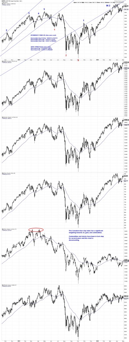 The first chart is the weekly SPX chart showing the SP 500 since 2006.  It shows the T that was formed during that period and the end of the T at the May 2011 peak.