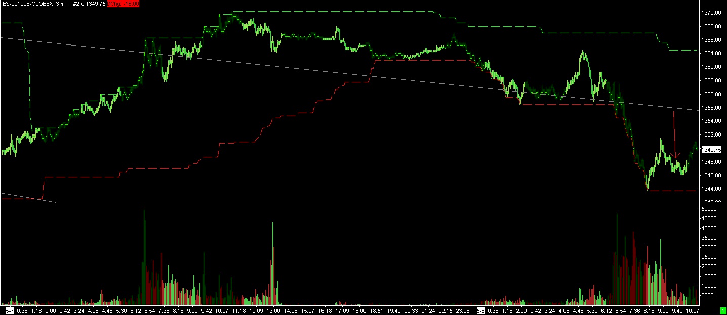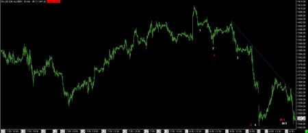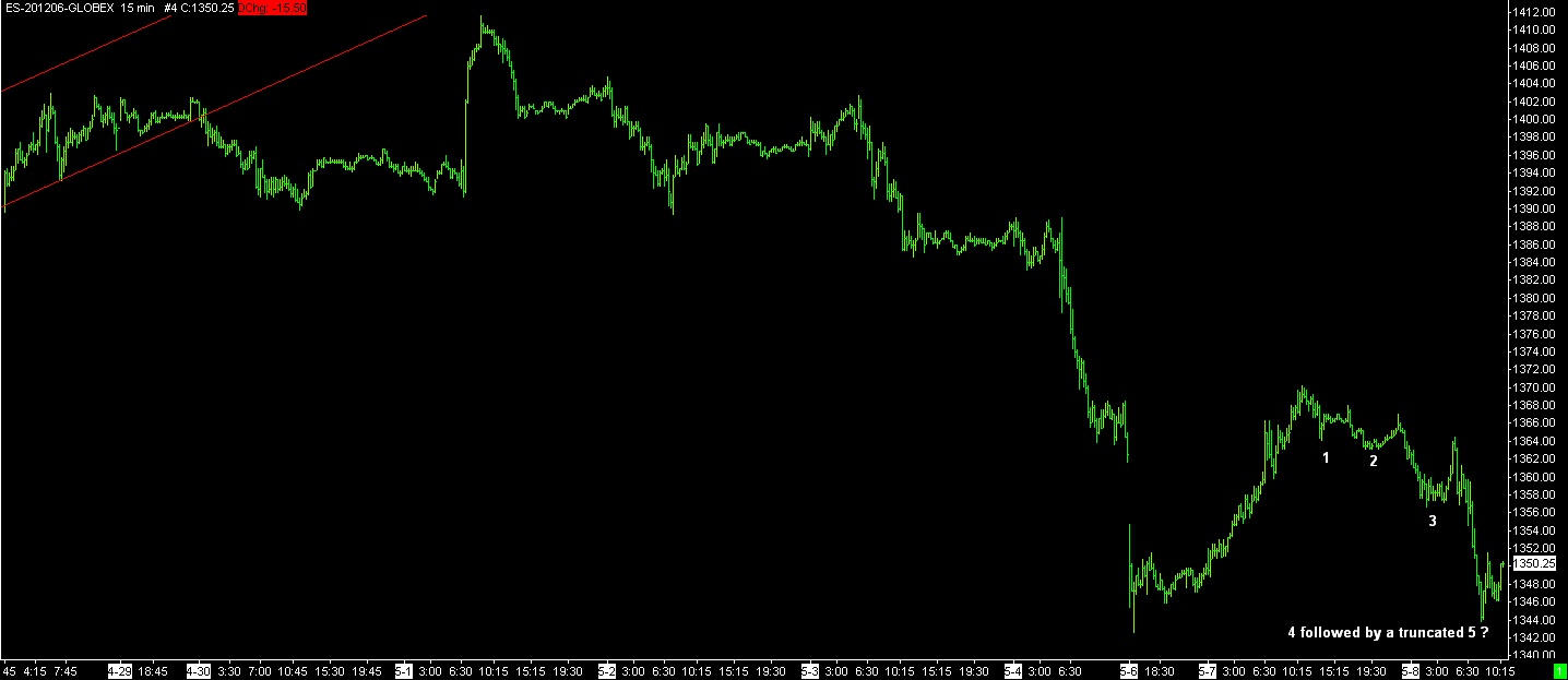 It’s one of those wild speculative things that I do when the count looks about right. We have a truncated step down (higher low) and are waiting for higher highs. This is what I was waiting for when I didn’t modify the forgotten buy signal to a sell. Today was that last thrust down and I’ve been fine tuning today’s decline.