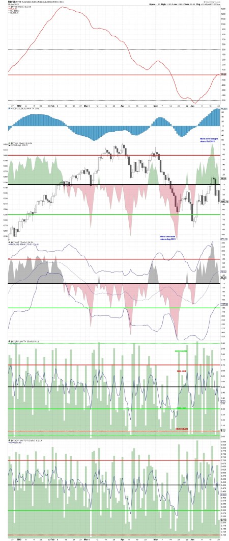 At the recent peak, we were the most overbought since October 2011. Presently we are approaching neutral territory. I would expect we will move closer to oversold before the decline finishes. Notice how the McClellan Summation index has rallied back to the zero line and stopped. Oscillating between +500 and -500 is a frequent occurrence with the zero line as a turning point on occasion.