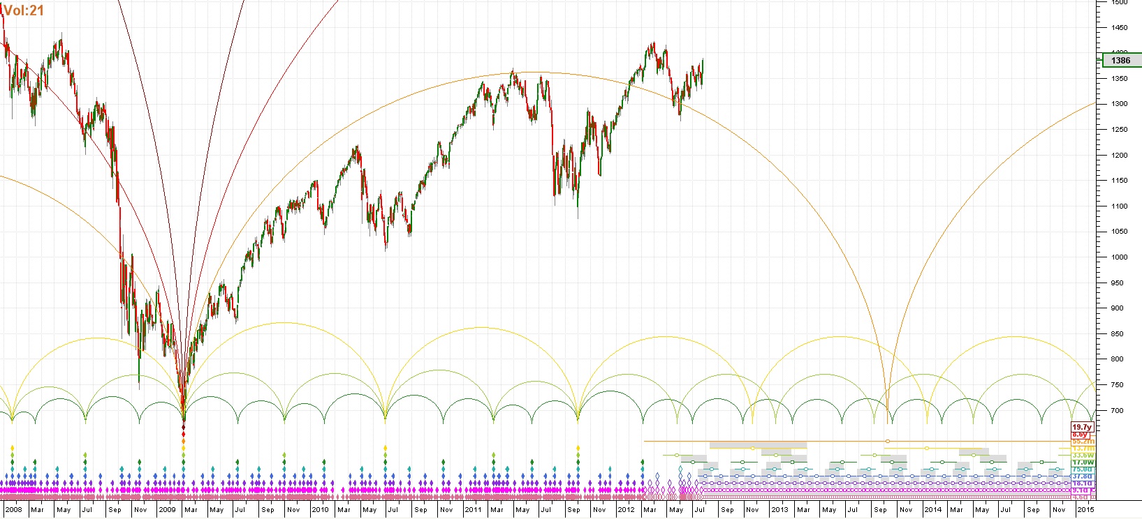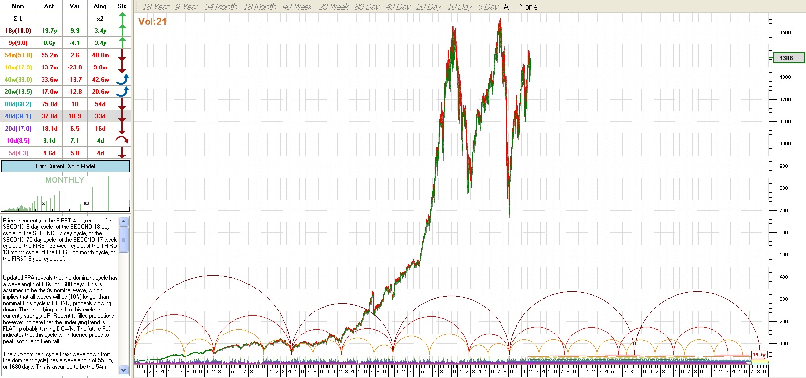 Next is the longest term view of the current cycles. Note the interpretation of the cycles on the far left. I normally edit this out to get the maximum size chart.