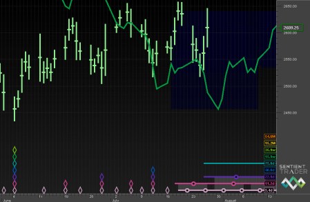 The software to generate the cycles is excellent and highly recommended (Sentient Trader). It automatically generates all of the bells and whistles that Hurst developed and does it accurately. But if all you want is the Cliff Notes version of the cycles, try Hurst Signals. It’s consists of a concise update of the different cycles and no work is involved.