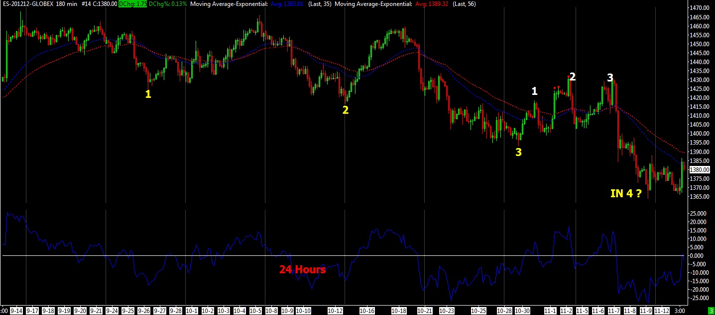@10:01 – The futures were down about 14 points last night before reversing, forming a double bottom (Friday and today). Rally has run out of steam and is falling back in a correction. The count “appears” to be in step 4 down but that is ALWAYS dependent on not breaking the downward channel. See what I think the count is since 9/14 at: https://stock-market-observations.com/wp-content/uploads/2012/11/11-13-12-sp-futures-since-sep-14th.jpg