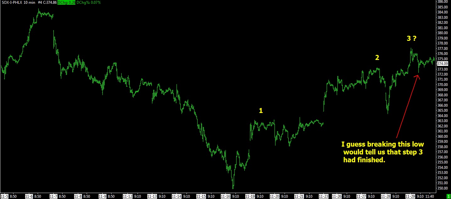 18:20 PST – Semiconductor index with a “possible” wave count. This index can lead the market.