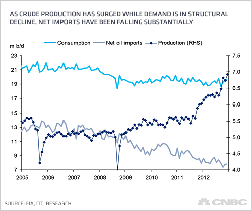 In the past six years, oil imports into the United States have been cut in half, after peaking in 2006.
