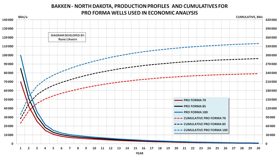 What follows is a little about the economics for what the analyzed data presently describes as the pro forma (“average”) well in the Bakken formation.