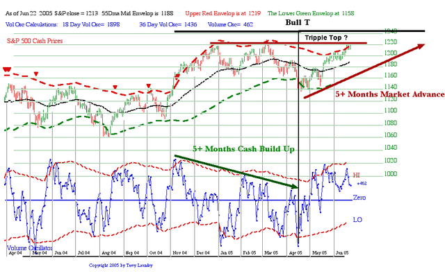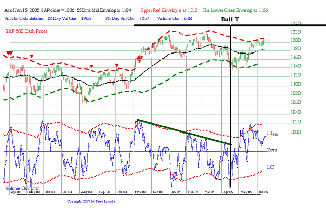 The Ts were confirmed in 2001 as reliable going back into the 1930’s using web published charts of the NY Index and A-D Line. This summer I will take a new clean database that starts in 1926 and re build the above chart in one continuous 80 year run. From this very long term perspective I can then do a wide variety of studies that better present the Ts reliability, confirmation of lows at the center post of any T as well as the validity of the suggested 8 year cycle, etc.