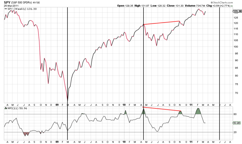 Looking at the weekly charts, the weekly SPY Money Flow T™ expires during the week of ~June 6, 2011: