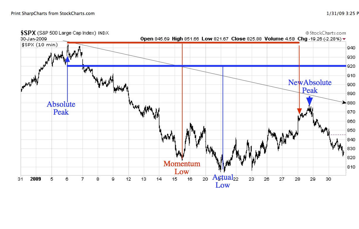 This is the basic example in chart form we will use to recalculate the mid March short term peak in the 10 minute charts.