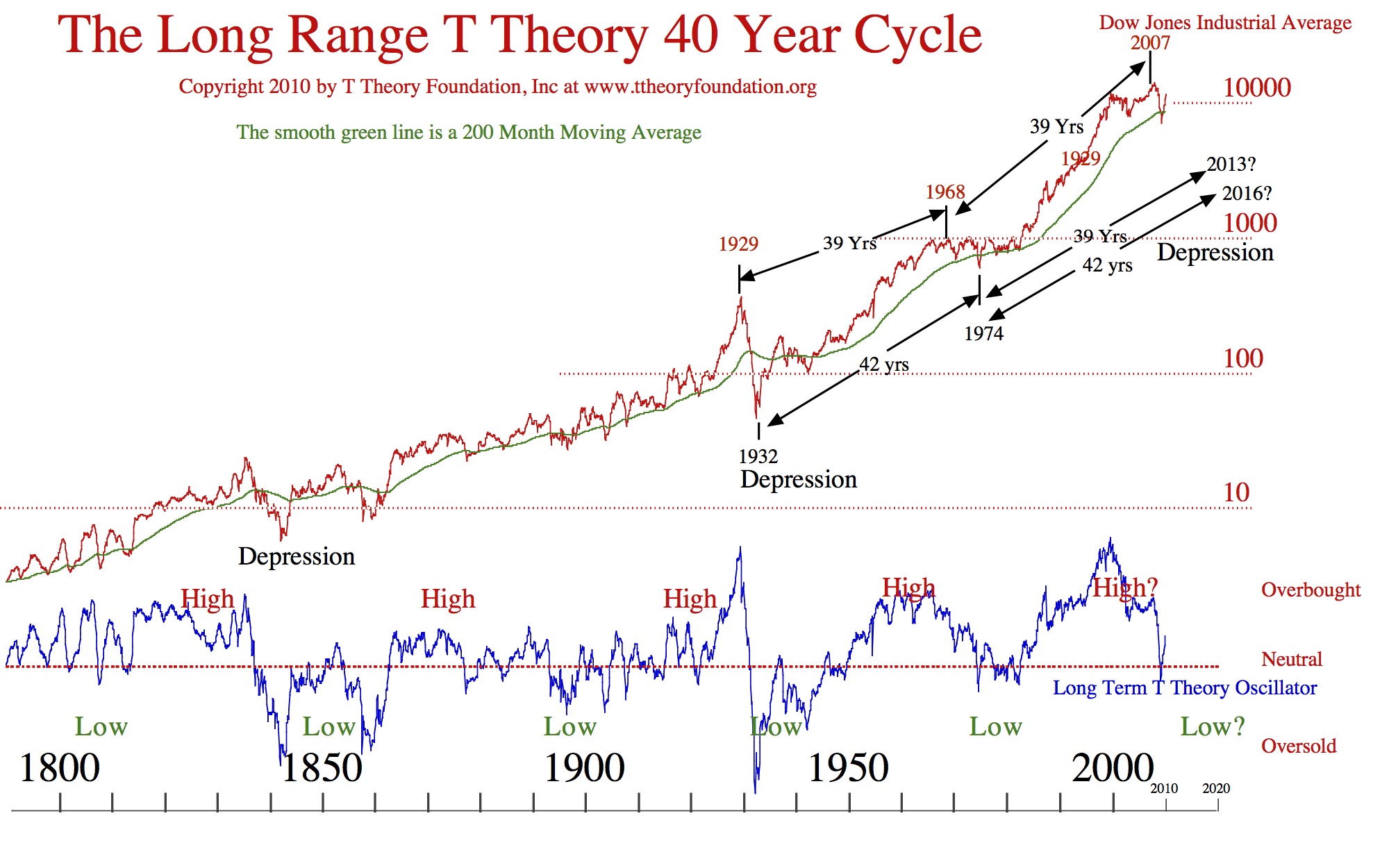 This week I summarize my current T Theory project on the 40 Year Cycle as it applies to the coming Depression. Open the PDF Chart below and listen to the two audio files that refer it it.