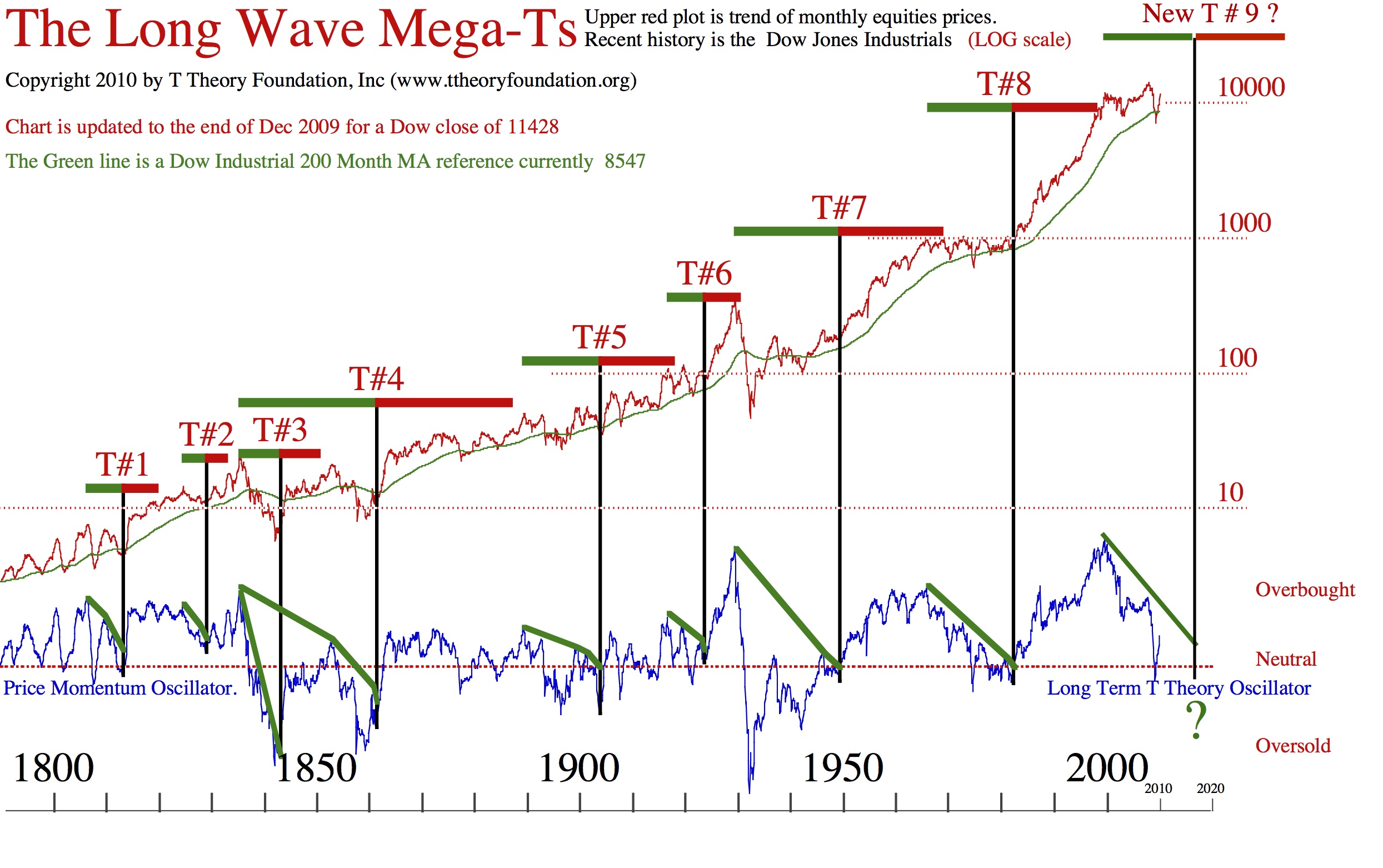 So this week my single topic is consideration of my Longest Range MegaTs which provides the necessary 10 to 20 year perspective to prepare us for the  next bear market.  This equity decline should last from the current projected August 2010 major peak to the next 40 year cycle low expected around 2013.