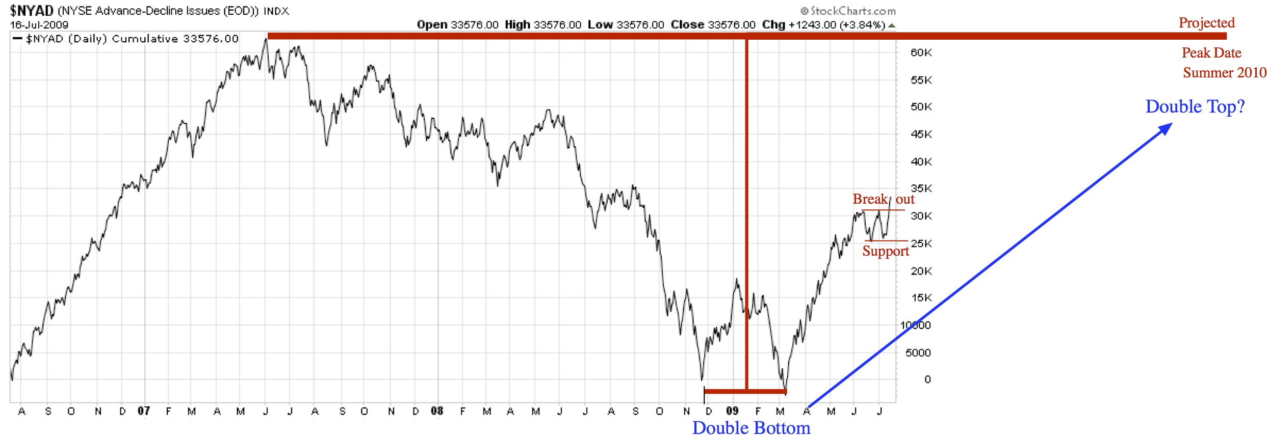 Topics in today’s discussion include; re-confirmation of the Advance-Decline T that projects a bull market into the summer of 2010; reasons why investors can’t make money in the post 2000 market, and Terry’s comments on gold related investments as requested by viewers.
