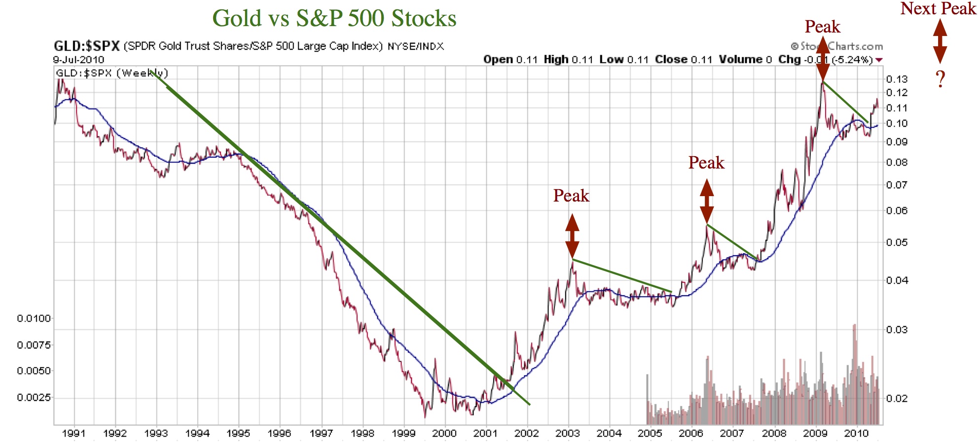 Gold vs S&P500 Peaks and Short Term Envelope Projection