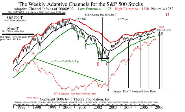 In this Observation report I am summarizing my review of the big Advance-Decline T which has projected the rise from the late 2002/early 2003 low will last into 2007 despite corrections along the way.