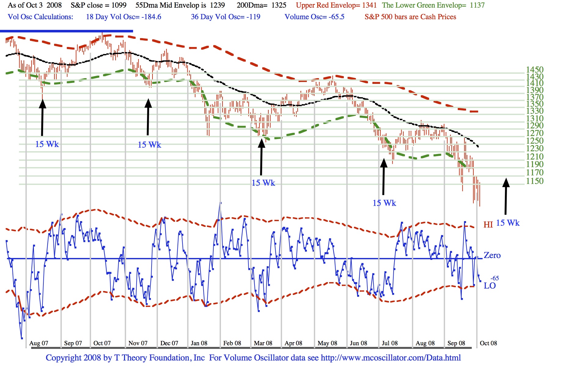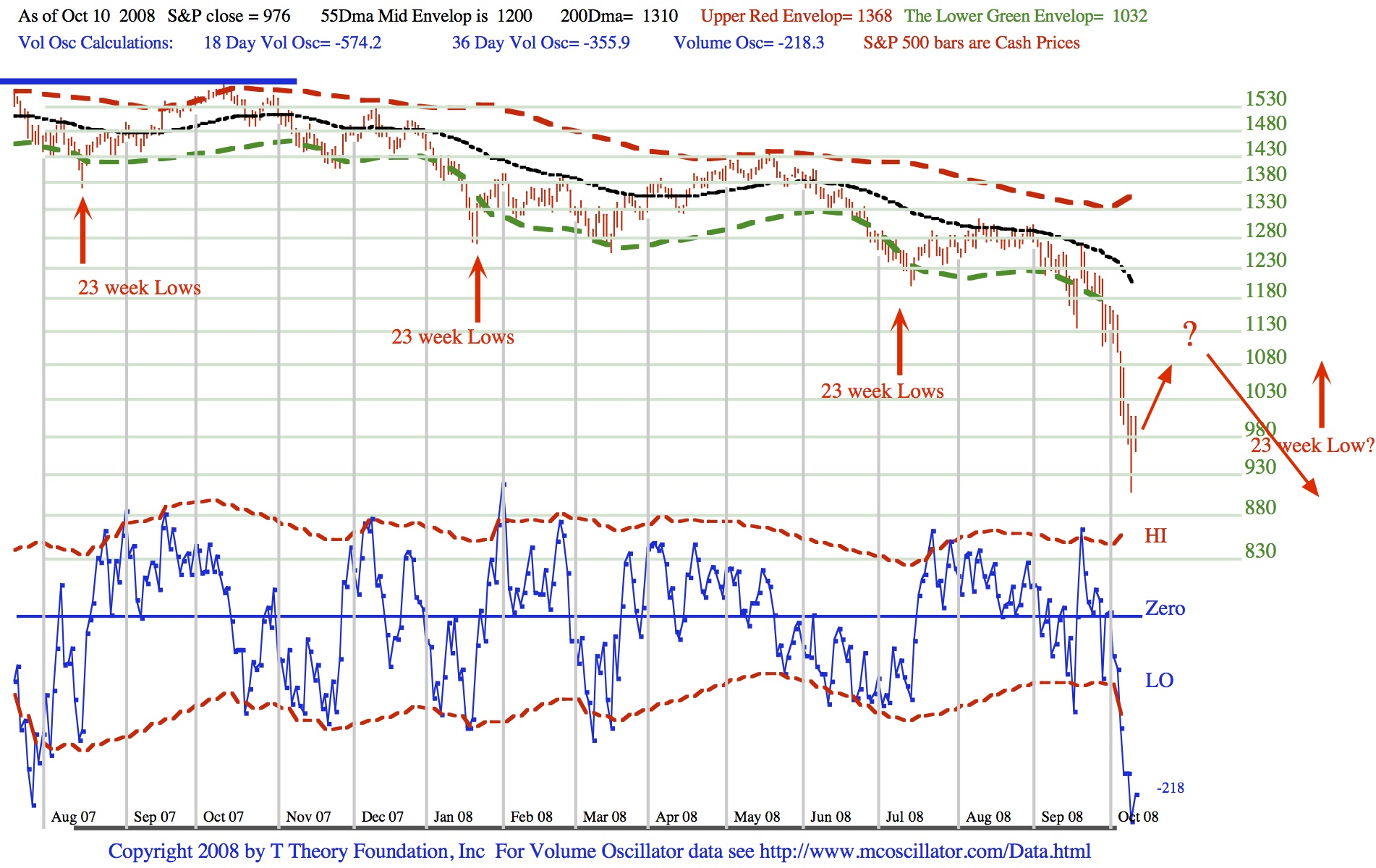 We need to see how the recovery proceeds next week before going on with my recently expanded T Theory analysis  derived from the daily history of the 1929-32 40 Year Cycle decline and it companion 40 Year Cycle, the 1973-74 decline. The key will be to see how the market performs after the sharp up day on Monday and a probable carryover into Tuesday.  The question beyond this reflex trading rally is whether longer term investors will still be interested in buying and thereafter how their day to day actions compare with similar oversold rallies during the 1929-32 and 1973-74 period.