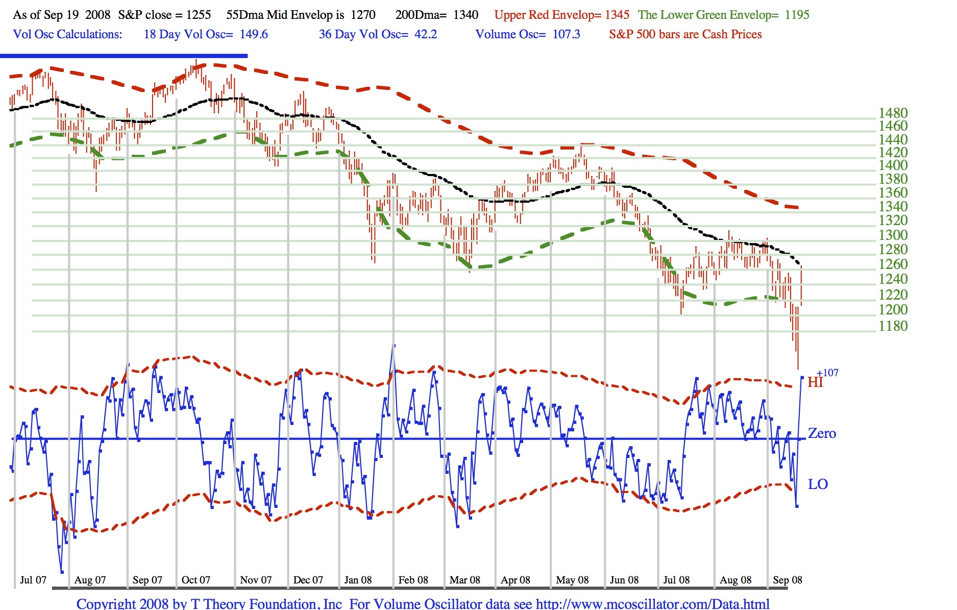 Clues to this roadmap will be seen in three responses to news events over the next 2 months. Next week we should see the market’s reaction to the bailout proposal. In mid October the market will be reacting to the new flow of earnings reports. And through most of November the market will be reacting to the new President and his plans. Should make for an interesting period.