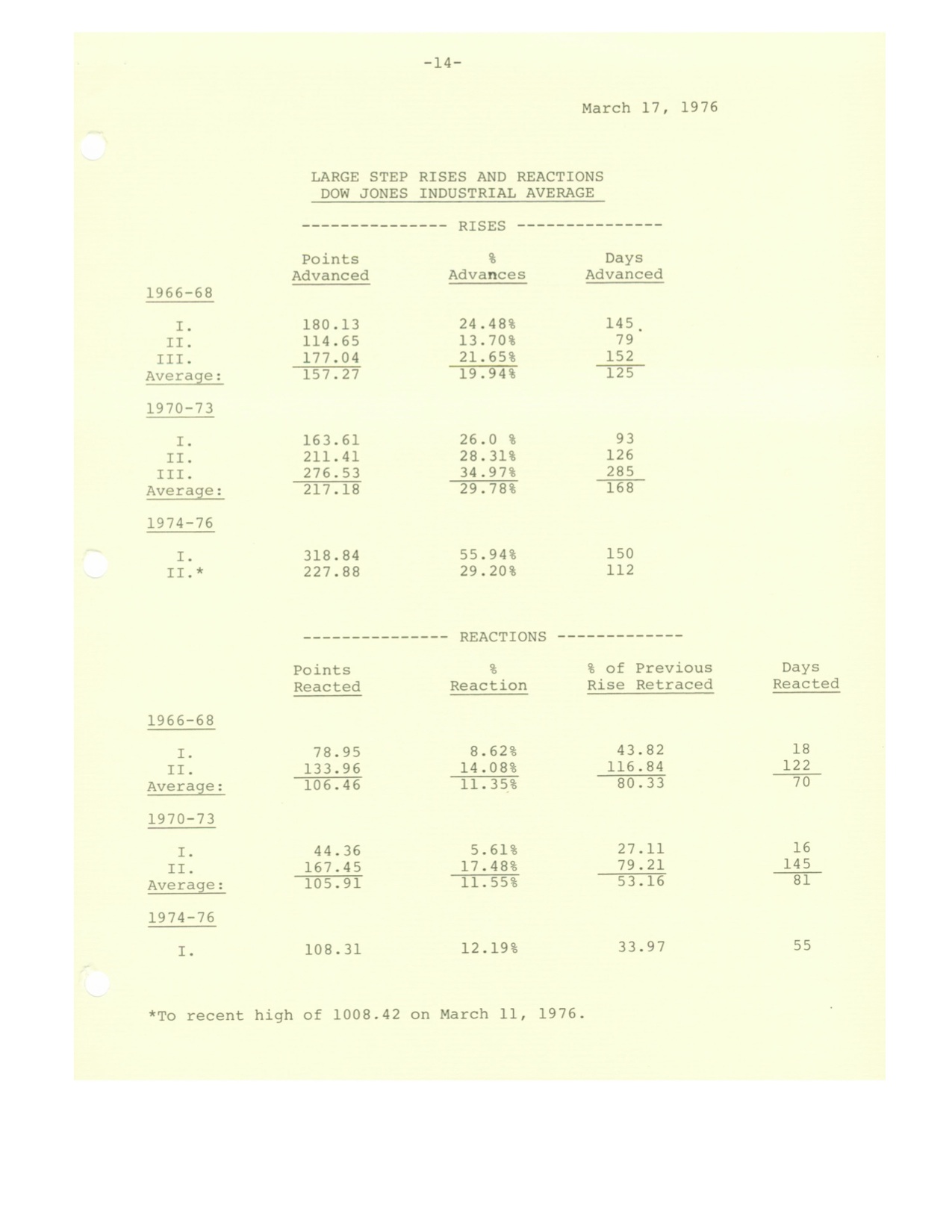 - On January 16, 1973, in a “special sale bulletin” he urged subscribers to sell, believing the bull move that had started in 1970 at 800 was over. By December 1974, the DJIA plummeted 497 points.