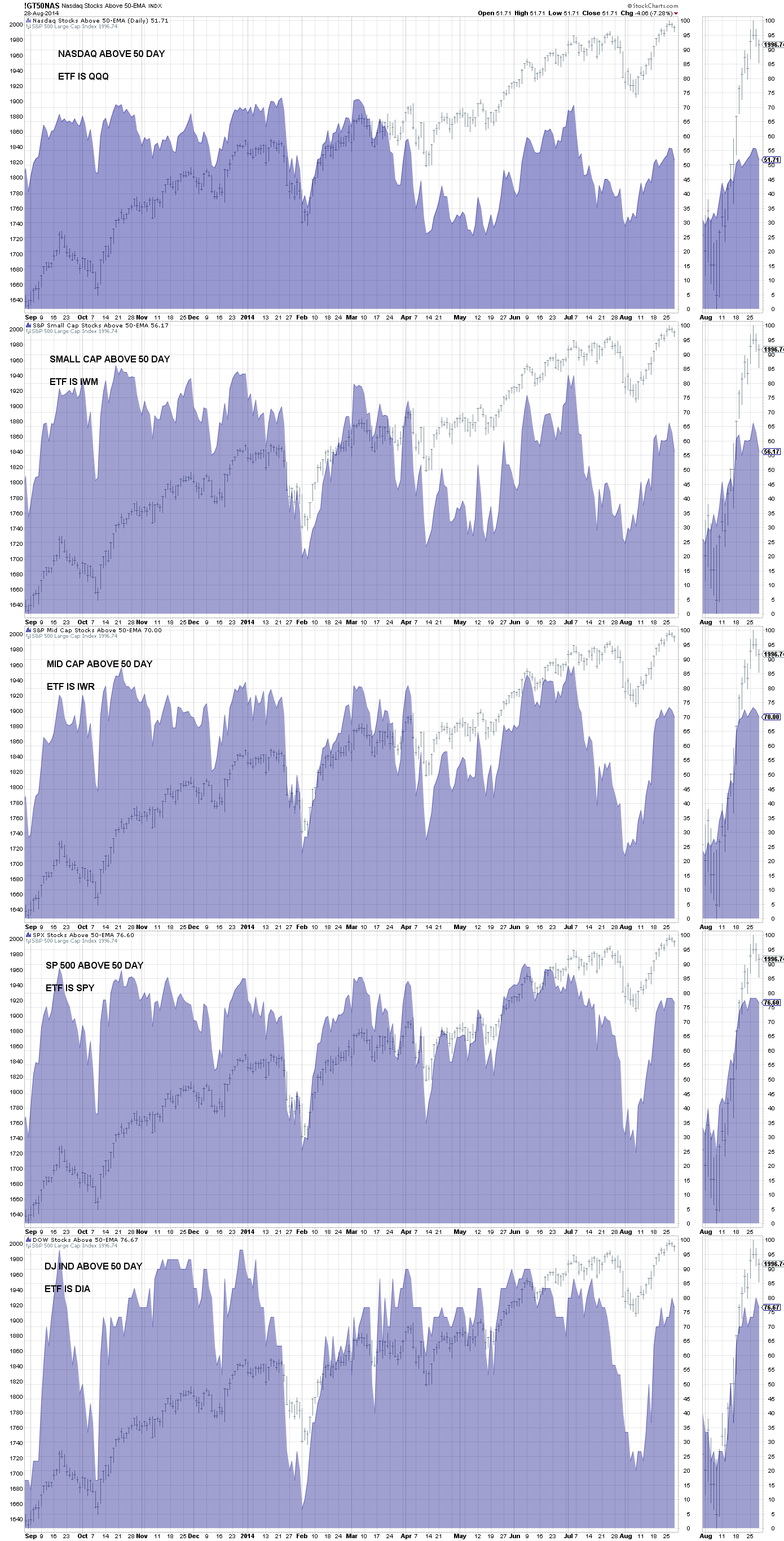 Chart 1 is the percentage of stocks on the NASDAQ exchange above their 200 day average