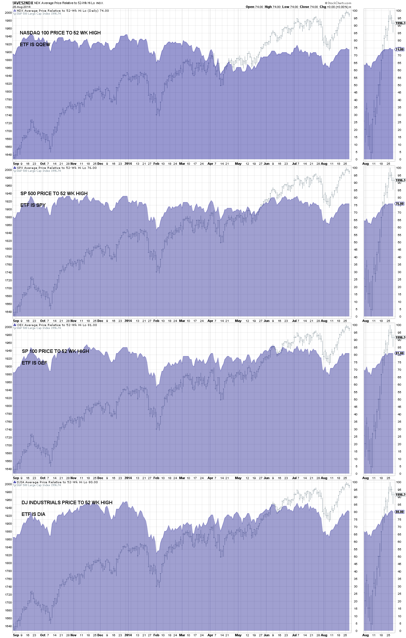 Chart 3 is the SP 100 current price of the index’s components versus the index’s average 52 week high for all stocks in the index