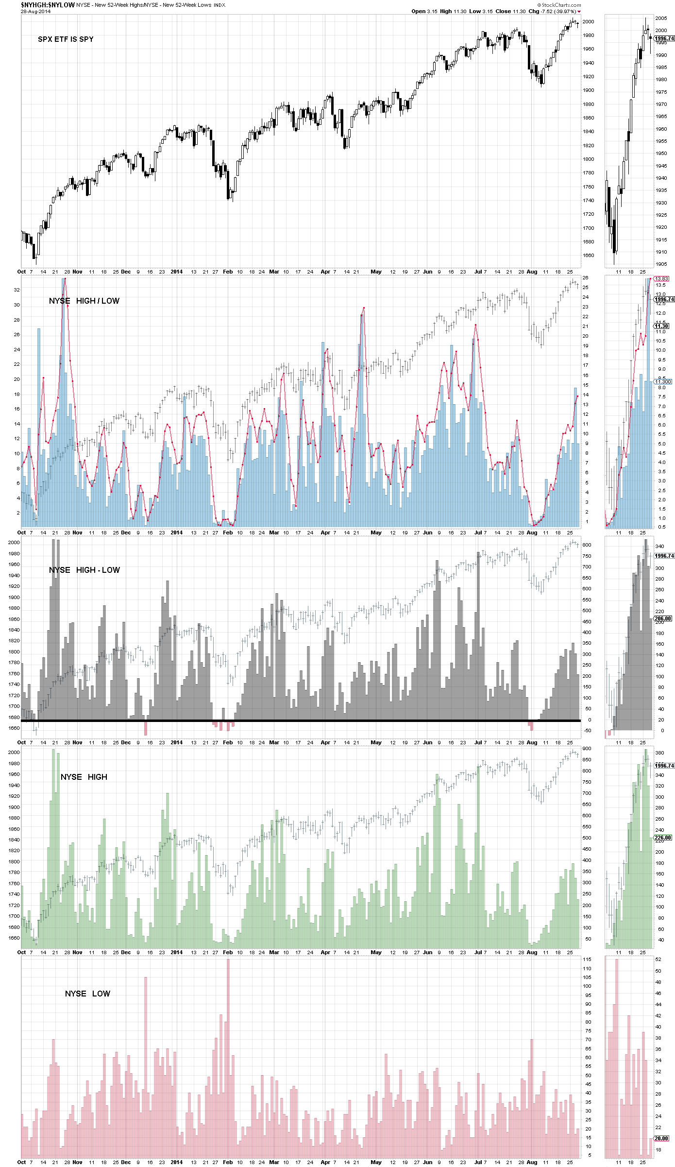 Chart #5 is the number of daily new lows in red