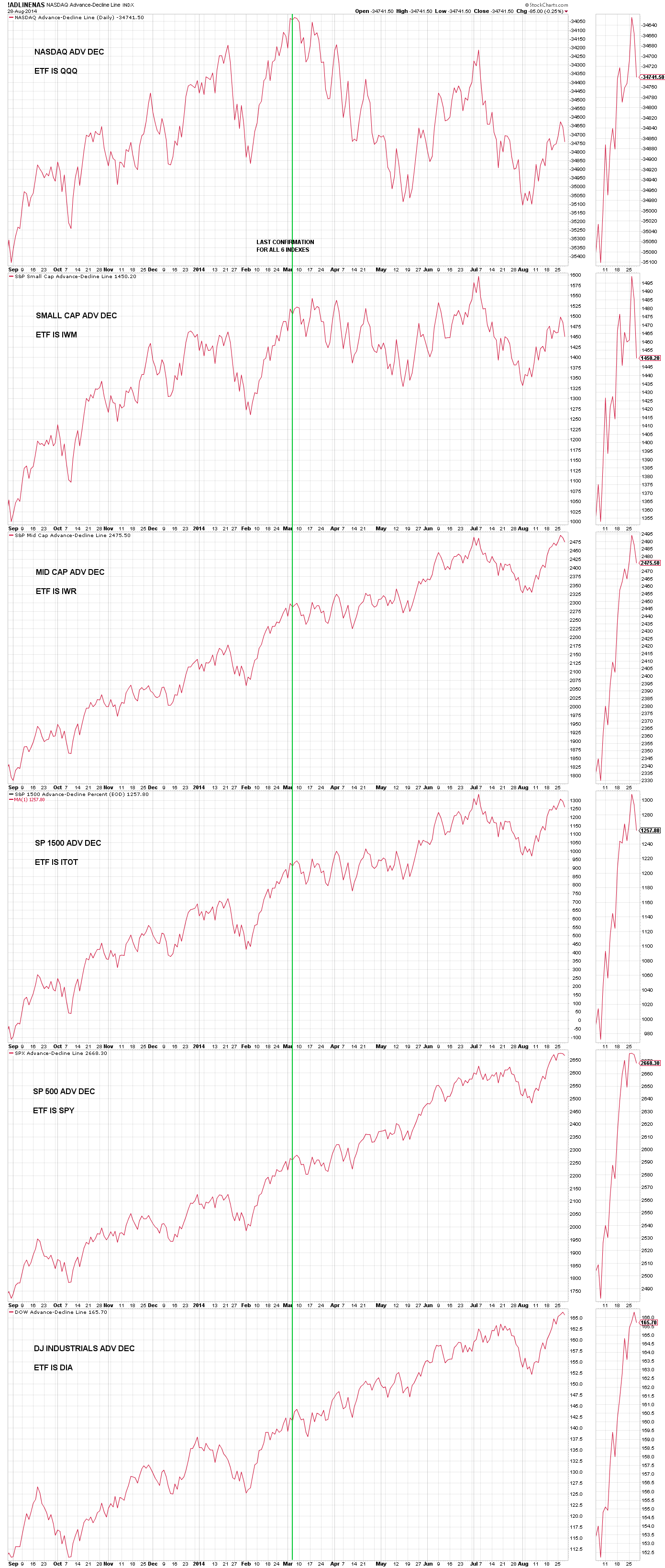 The current chart for cumulative advance decline follows.