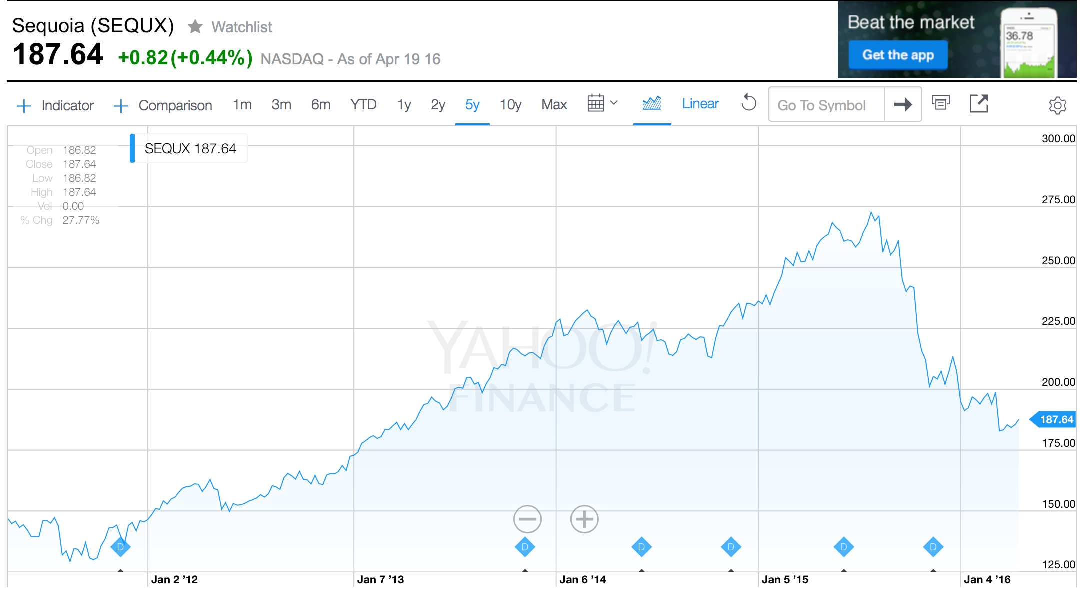 Sequoia fund lost about $100 per share during the Valeant debacle, sliding from about $287 to a low of $182.